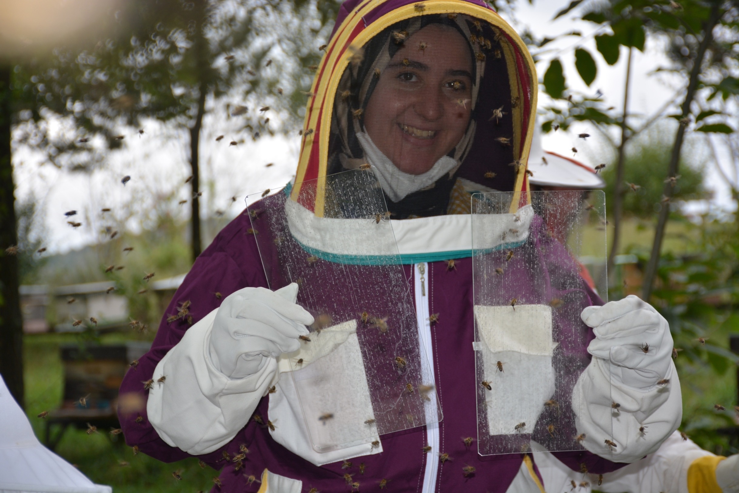 başında uygulamalı olarak gösterildi. Piyasada bulunan farklı tip zehir toplama cihazları, kovanlarda