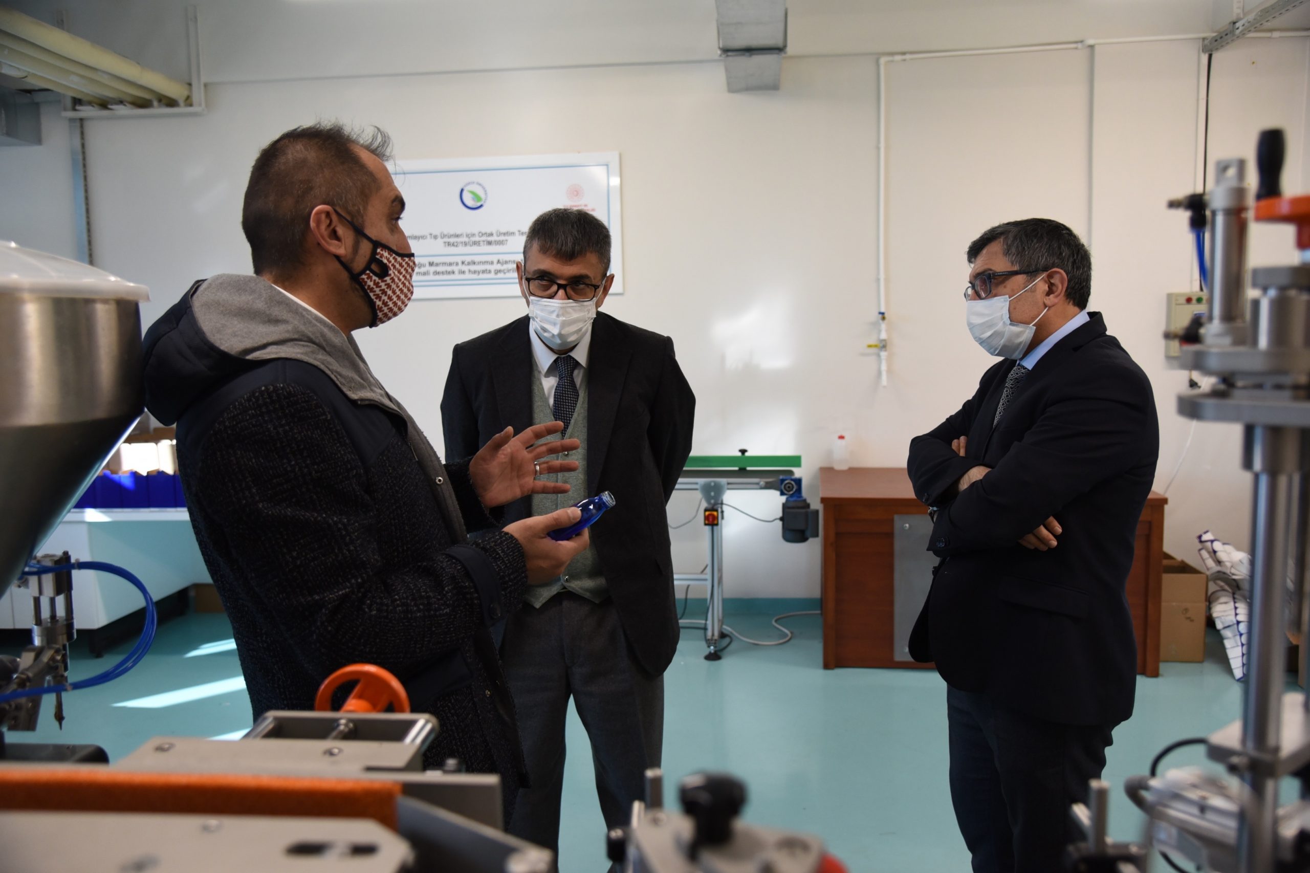 Konuk rektör daha sonra GMP, ISO 9001 ve ISO 22000 sertifikalarını teslim alarak, evrensel standartlarda üretim yeteneğini belgelendiren Düzce Üniversitesi Üretim Merkezi’ni ziyaret etti. Ziyarette, Düzce Üniversitesi Çevre ve Sağlık Teknolojilerinde İhtisaslaşma Koordinatörü ve DÜBİT Müdürü Doç. Dr. Uğur Hasırcı, Düzce Üniversitesi’nin yeni markası olan Univera logolu tüm ürünlerin, sadece Düzce Üniversitesi uzman personeli eliyle üretildiği tesisin, ayrıca endüstriye nitelikli fason üretim hizmeti de verdiğini ifade etti. Üretim Merkezi’nde ayıca Düzce Üniversitesi koordinatörlüğünde bölge halkı tarafından üretilen tıbbi bitki, tıbbi mantar ve arıcılık ürünlerinin, katma değerli nihai ürüne dönüştürüldüğünü vurgulayan Doç. Dr. Uğur Hasırcı, yapılan çalışmalar hakkında bilgilendirmede bulundu.